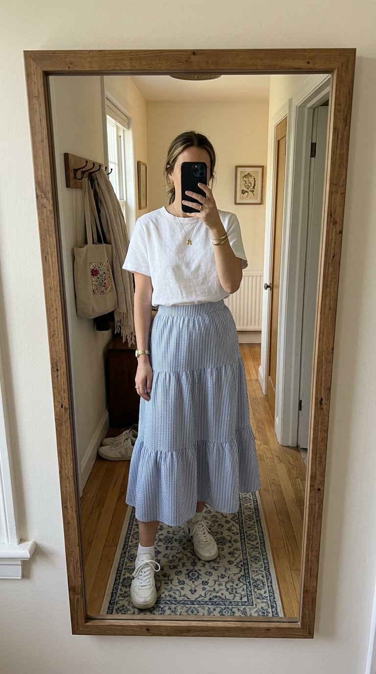 4. The Sweet Seersucker Skirt And Boxy Tee That Simply Won’t Cling