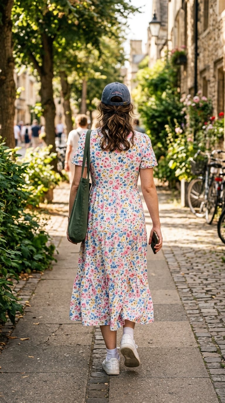 A flowy summer dress can sometimes feel a bit too dressed-up for a casual Tuesday afternoon. Throwing on a baseball cap instantly grounds the outfit and brings it back down to earth. It is a playful, unexpected combination that shows you do not take your style too seriously.