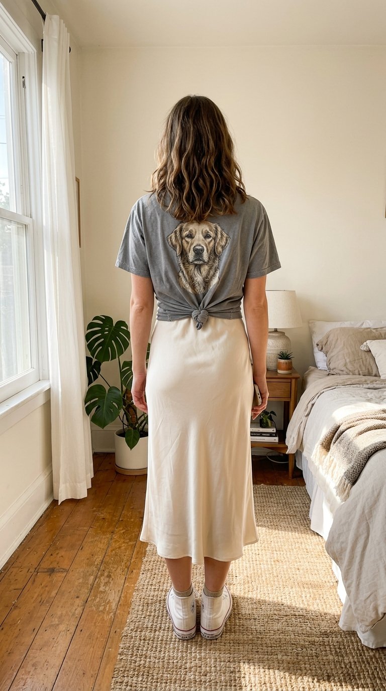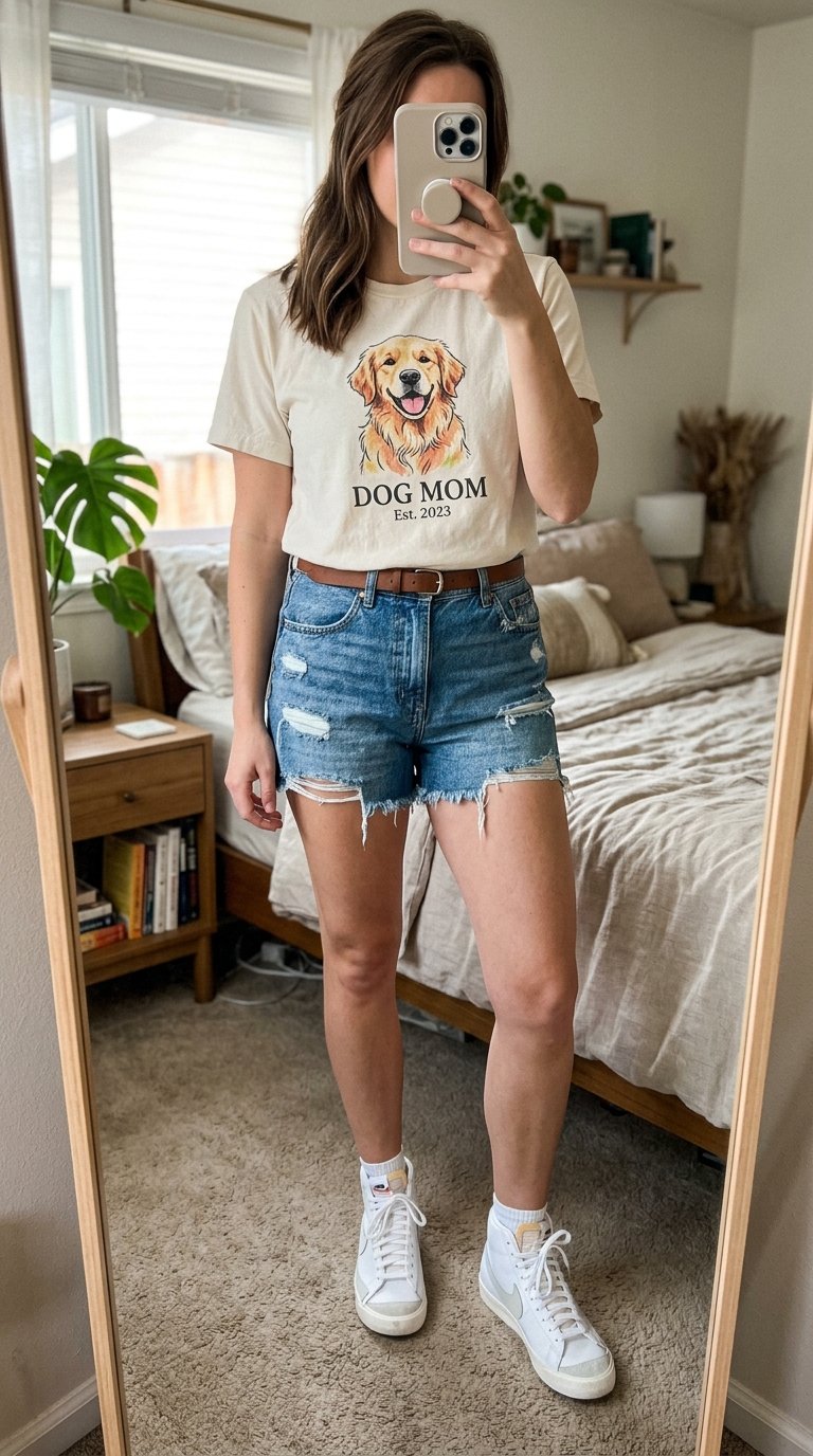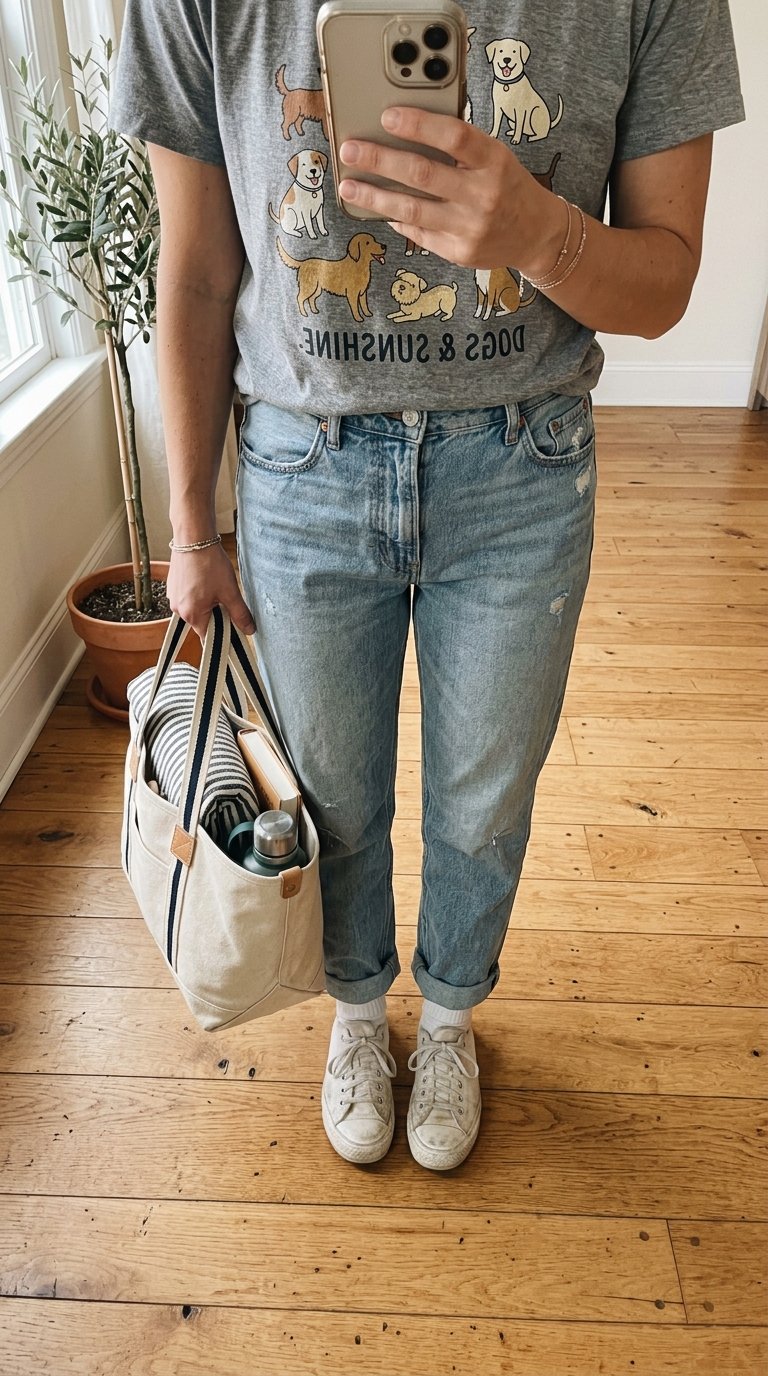 You want to look put-together, feminine, and ready for whatever the afternoon brings. Whether you are a proud dog mom or just found an amazing vintage golden retriever tee at the thrift store, I have got you covered.
