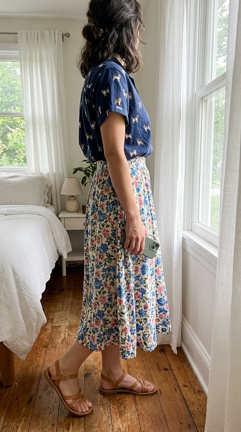 2. The Breezy Midi Skirt Pairing That Brings Major Rom-Com Energy