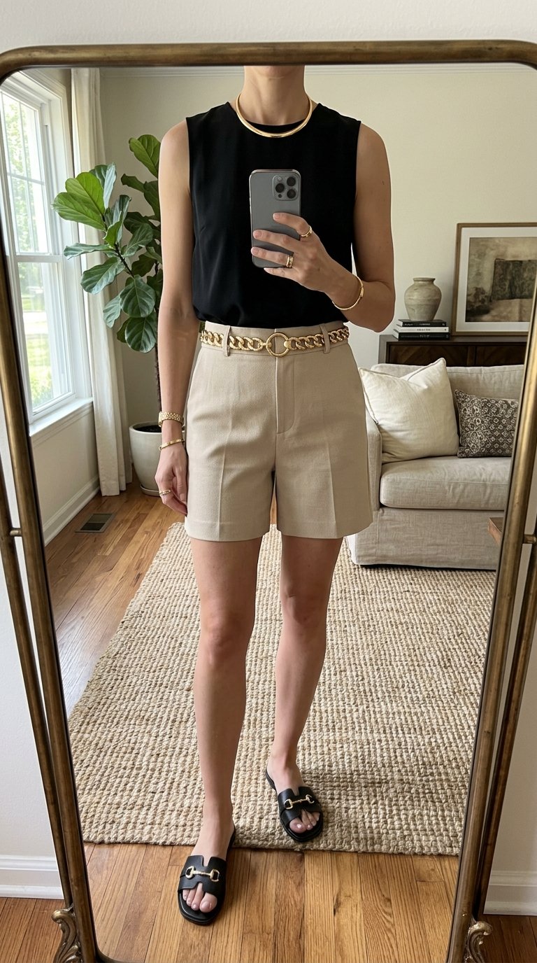 Summer in the city requires a very specific type of polish, and nothing delivers quite like tailored shorts. Adding structural gold jewelry to a smart, tailored look creates a powerful, confident aesthetic. It is the perfect blend of professional polish and warm-weather freedom.