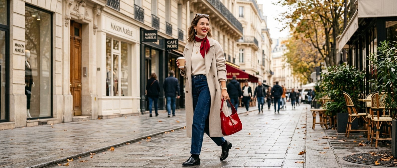 The magic of this outfit lies entirely in the power of coordination. When you match your cherry red ballet flats directly to your handbag, it creates an incredibly intentional, polished look. It shows you put real thought into the ensemble without looking like you tried too hard.