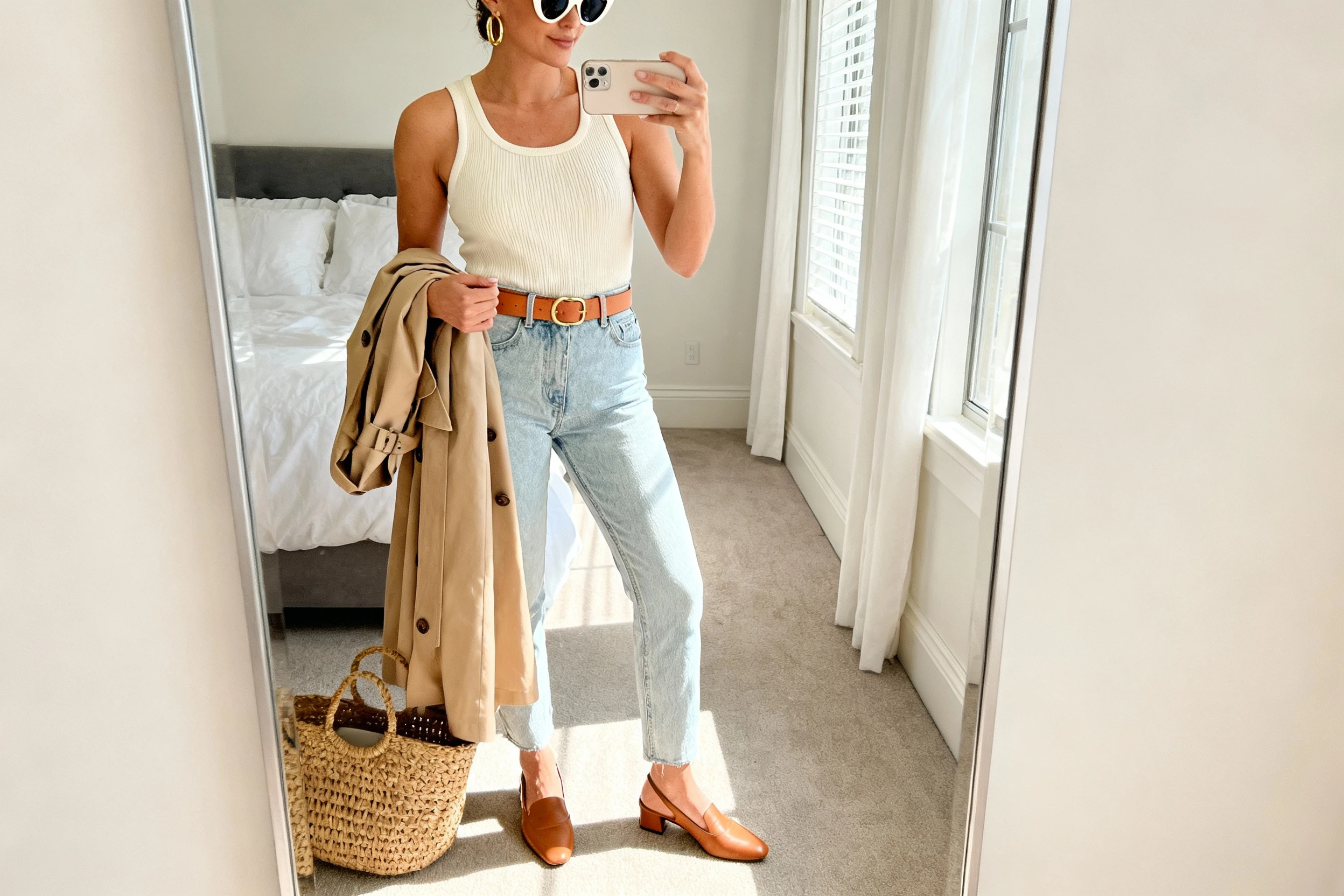 - Layer subtle textures (canvas tote, beaded bracelet) to keep the look effortless but styled.