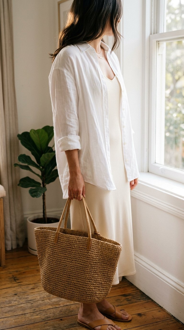 Accessories can make or break this classic pairing. A structured rattan bucket bag elevates the entire look and makes it feel much more sophisticated than a standard canvas tote. Pair it with a sleek leather belt that matches your sandals to show you put real thought into the ensemble.
