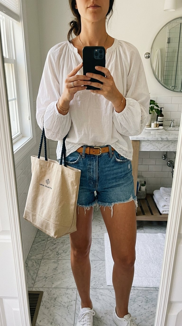 4. The Classic Denim Cutoffs And Billowy Blouse Power Pairing
