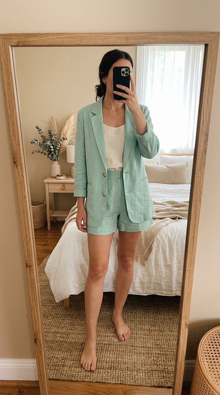 1. The Mint Green Linen Blazer And Short Set That Screams Springtime Chic
