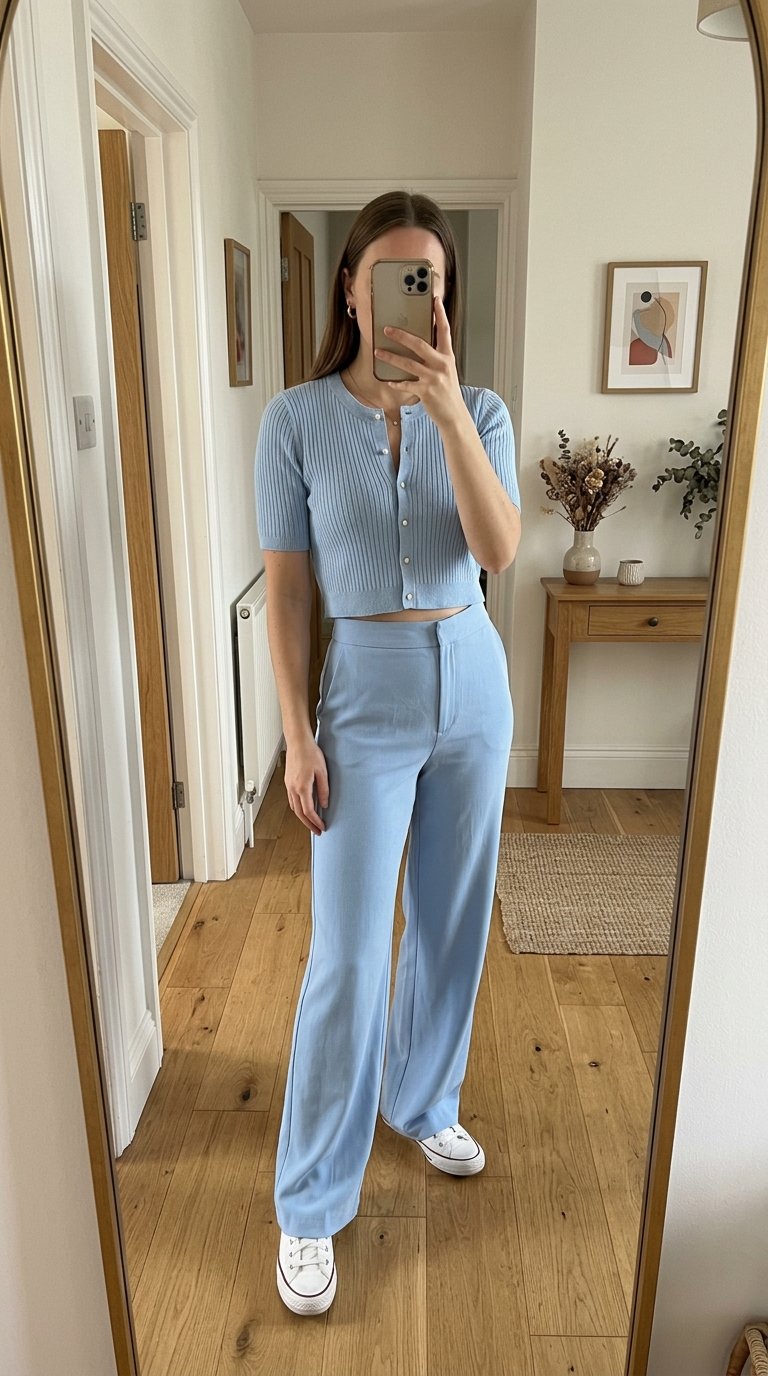 3. The Baby Blue Cropped Cardigan And Wide Leg Trouser Duo You Need