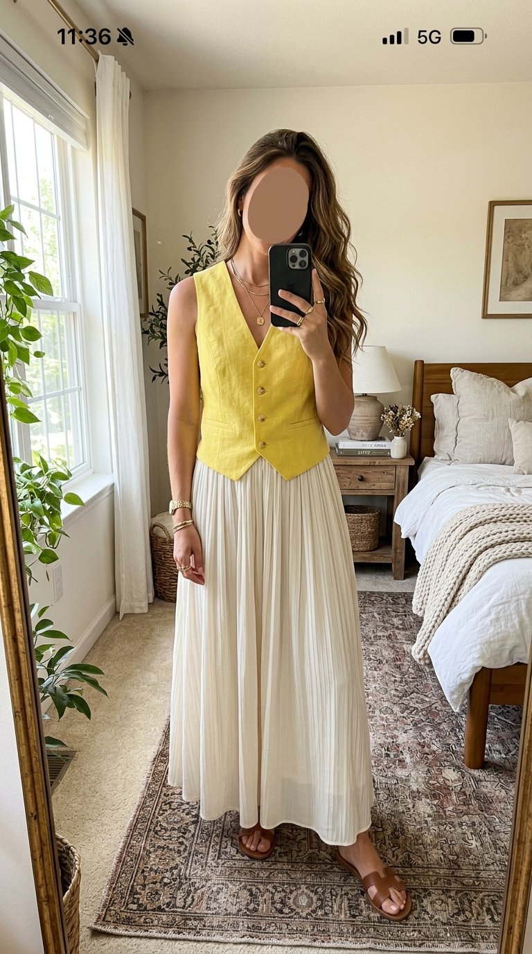 5. The Lemon Yellow Waistcoat And Flowy Maxi Skirt Pairing That Steals The Show