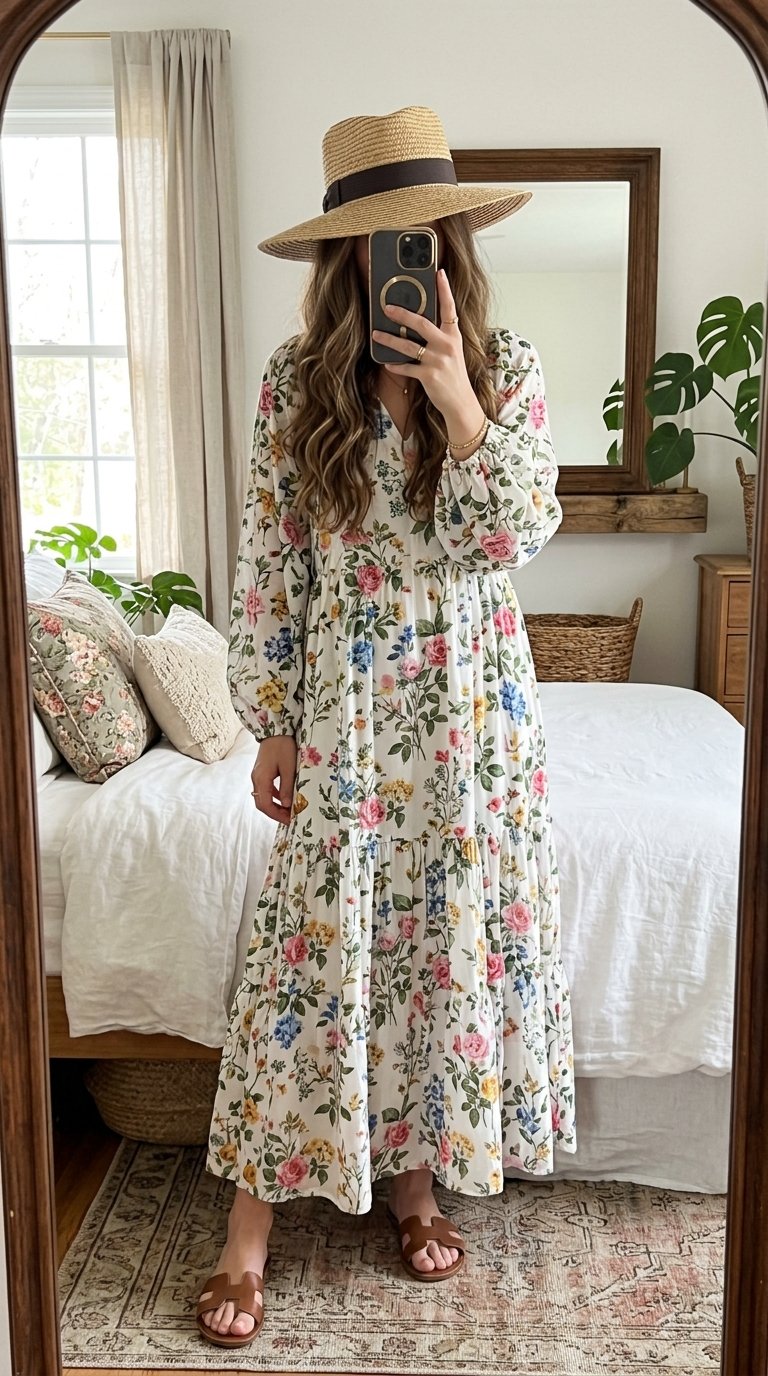 1. The Romantic Floral Maxi And Straw Hat Combo That Steals The Show