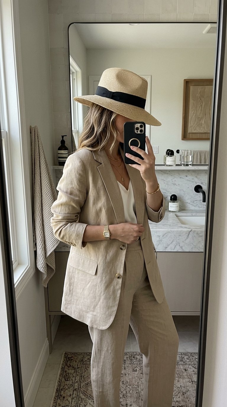 2. The Tailored Linen Suit And Structured Hat Pairing For Ultimate Power Dressing
