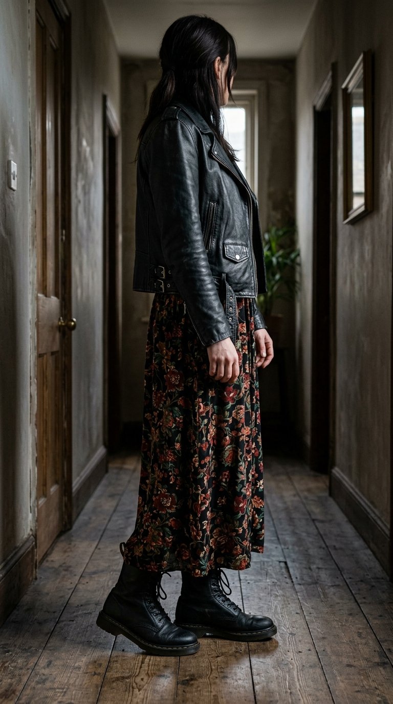The secret to nailing this specific look is all in the proportions and fit. Your leather moto jacket should be slightly cropped to highlight your natural waistline and contrast the long, flowing skirt.