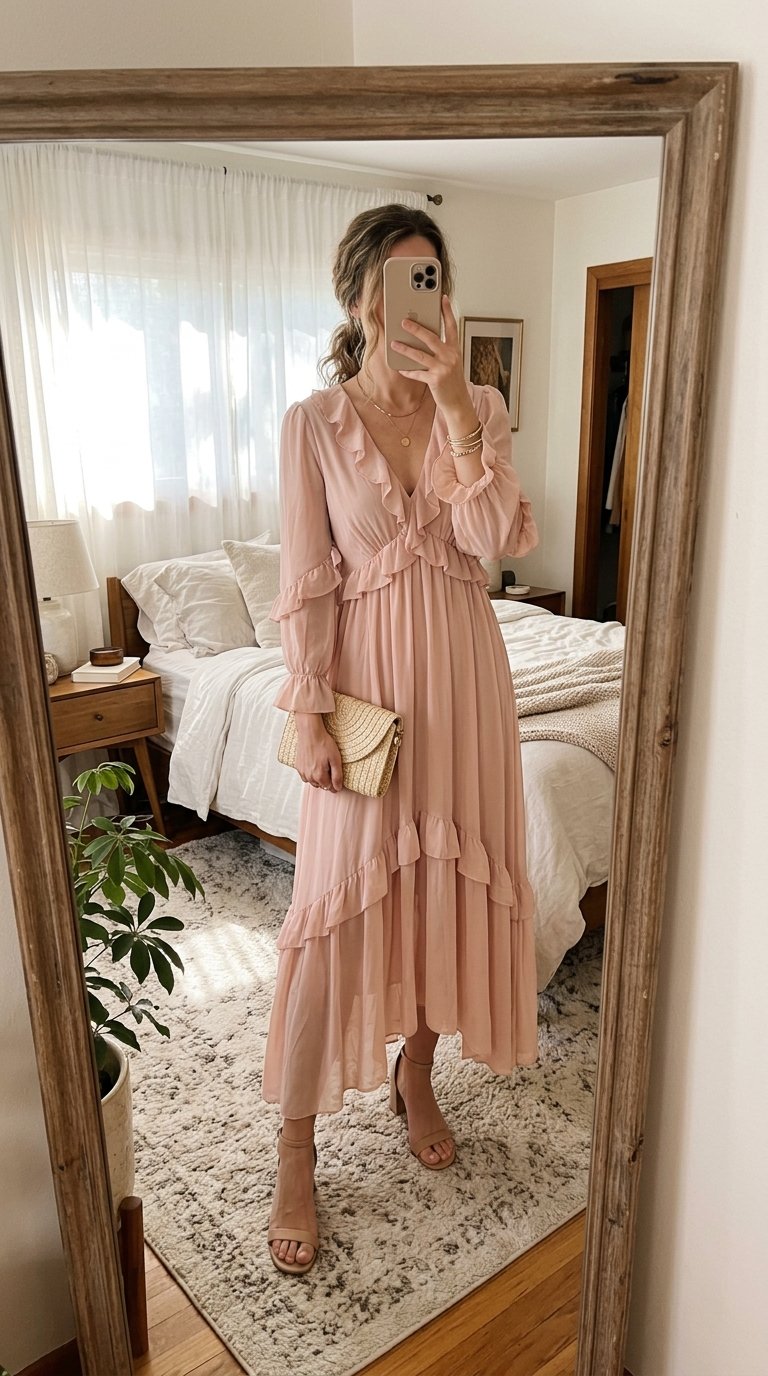 Start with a dress that has built-in, eye-catching texture, like intricate embroidery or romantic crochet panels. Bell sleeves add an incredible dramatic flair every single time you move your arms.