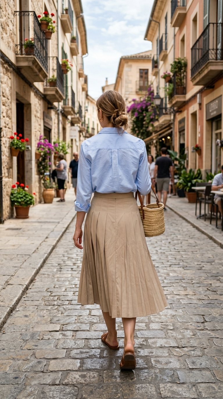 4. The Crisp Poplin Shirt And Pleated Skirt Formula That Never Fails