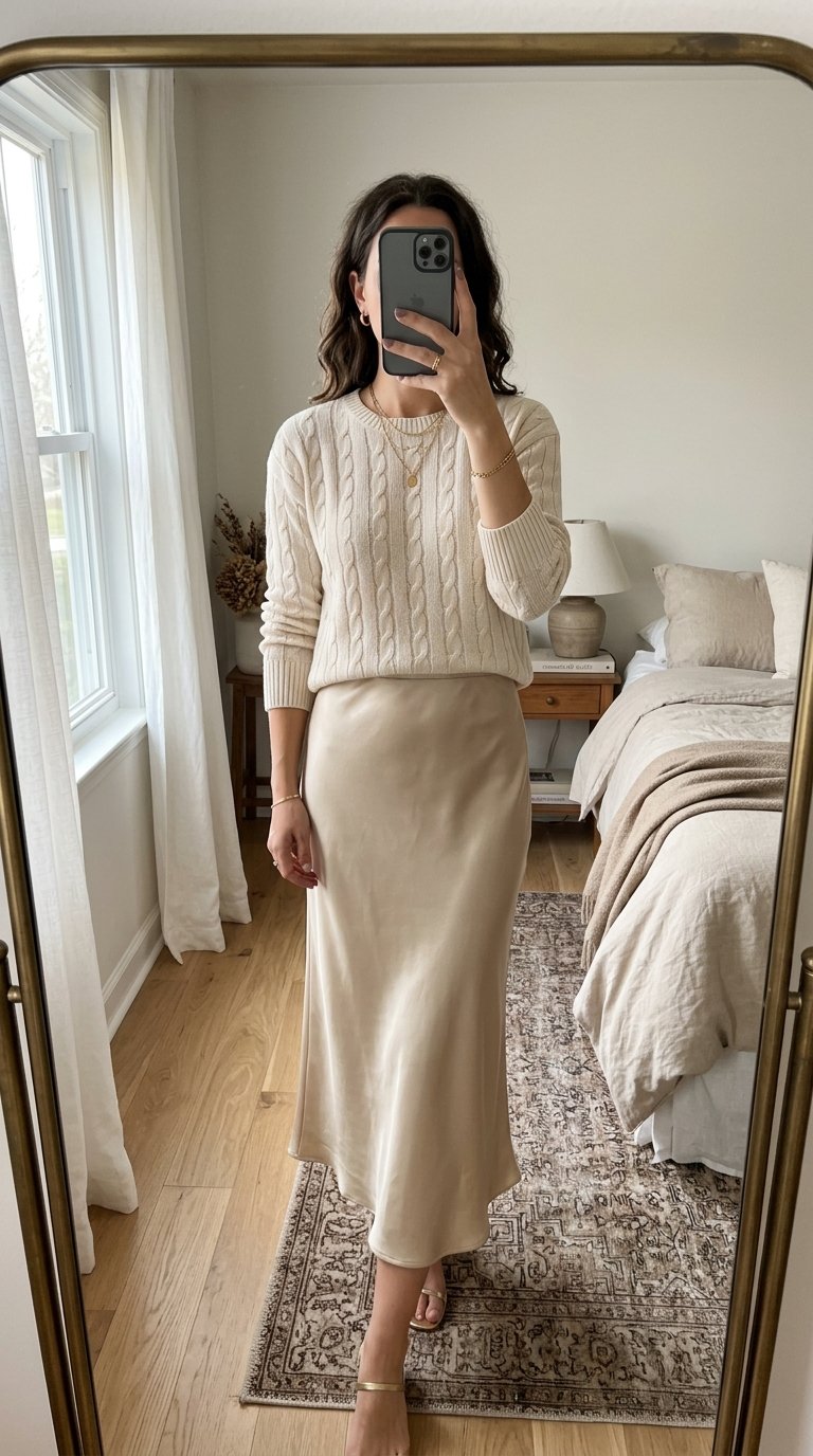 5. The Sleek Slip Skirt And Lightweight Knit Pairing That Feels Like Pajamas