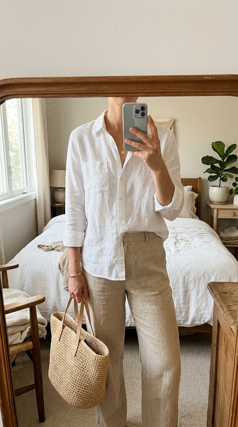 Is there anything more iconic for warm weather than a perfectly rumpled linen shirt? This outfit is the absolute cornerstone of effortless summer dressing.
