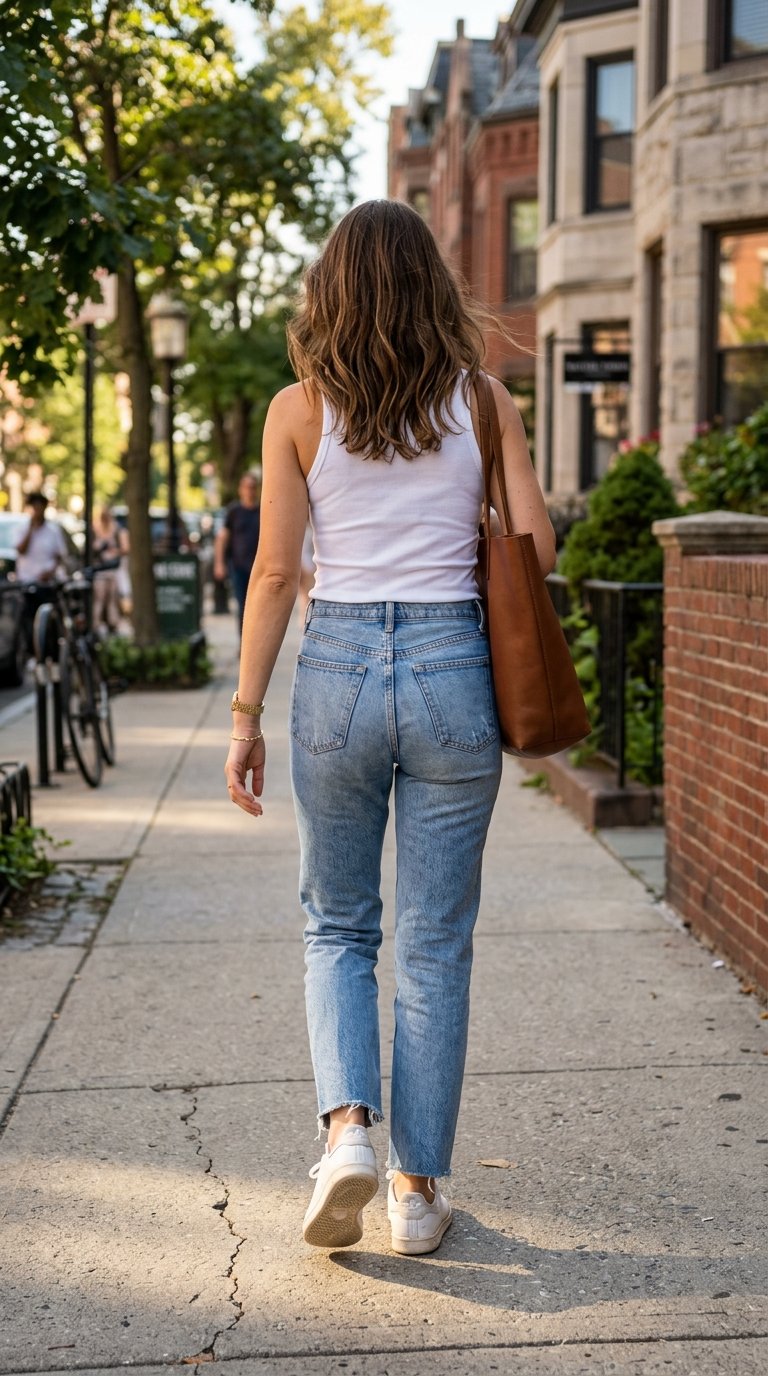 4. The Cool-Girl Casual Weekend Look With Your Trusty Ribbed Tank Top